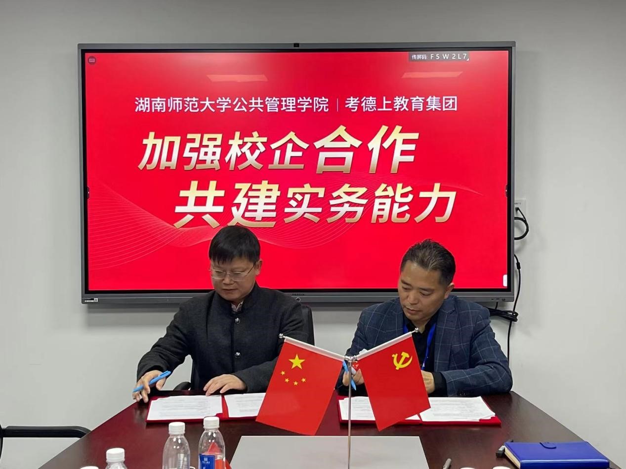 为进一步深化校企合作协同育人机制,11月25日下午,我院院长毛新志、副院长王敏、党委副书记孙雯波一行赴考德上教育集团总部开展校企合作课程签约座谈会。考德上教育集团董事长田亚东等人出席本次活动。