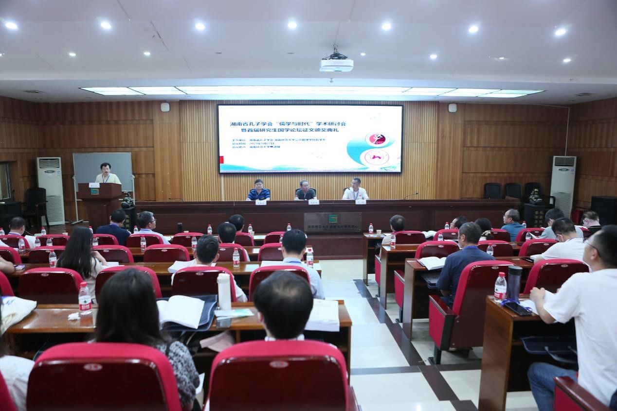 5月27日,湖南省孔子学会“儒学与时代”学术研讨会暨首届研究生国学论坛征文颁奖典礼在湖南师范大学景德楼成功举办,来自省内外的70多位专家、学人及会员代表们参会。本次会议由湖南省孔子学会和9999js金沙老品牌哲学系共同主办。