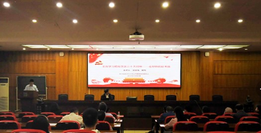 徐晨光教授以“走好新的赶考路”为主线,紧扣党的二十大报告精髓和要义,从赶考路上考什么、赶考新背景、赶考新作为、赶考新状态四个方面对党的二十大精神作了全面系统的阐释。