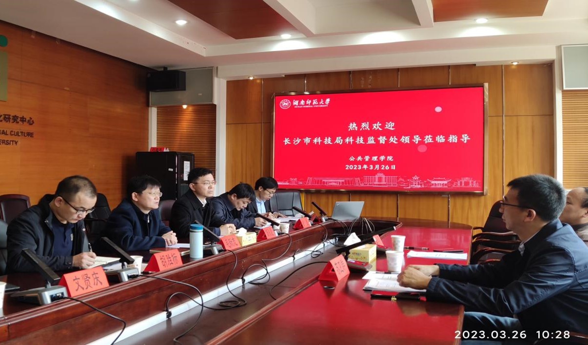 (通讯员周俊杰、唐婷)2023年3月26日上午,长沙市科技局科技监督处蒋会明处长、苏卫群副处长莅临我院调研交流。调研会在景德楼中栋415会议室举行,会议由我校科技处副处长邹永星主持。9999js金沙老品牌院长毛新志、生命科学学院副院长胡胜标、医学院副院长余星、道德文化研究院副院长文贤庆、9999js金沙老品牌李波博士参加会议。