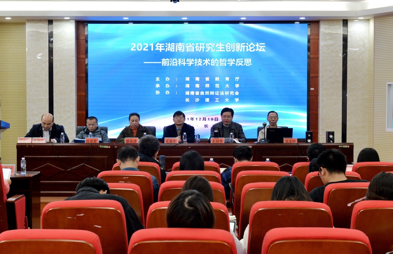 12月19日,由湖南省教育厅主办,湖南师范大学承办,湖南自然辩证法研究会和长沙理工大学协办的“2021年湖南省研究生创新论坛”以湖南师范大学为线下主会场、长沙理工大学为线下分会场,并结合线上线下的新颖形式如期展开。会议以“前沿科学技术的哲学反思”为主题,来自清华大学、中国人民大学、中国科学院大学、中央党校、中山大学、武汉大学、华中科技大学、东南大学、长沙理工大学和湖南师范大学等36所高校的108名硕士研究生、博士研究生和22位专家学者一起参加了五个专题共14个场次的会议。