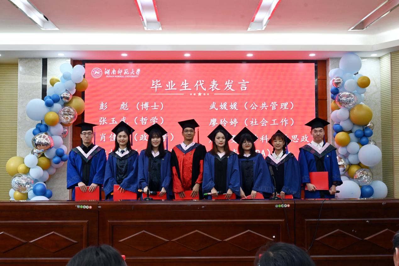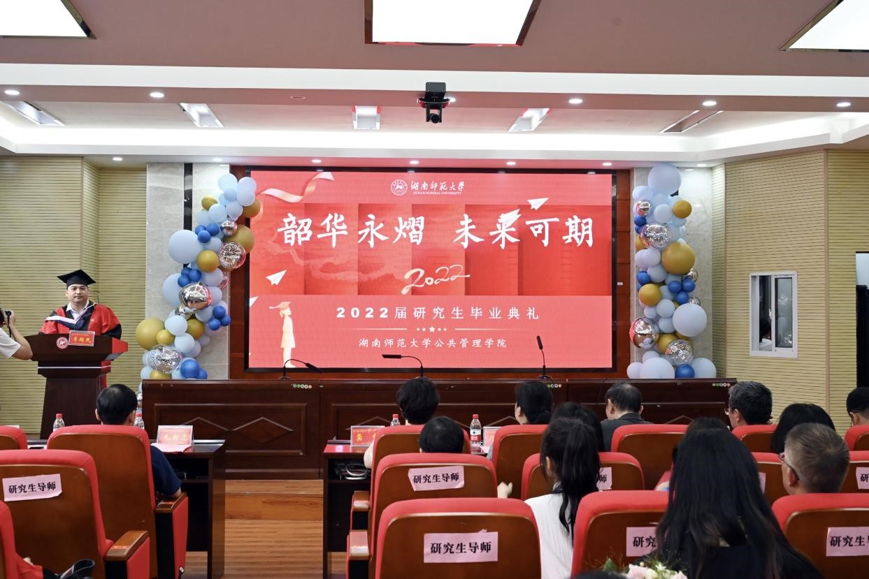 (通讯员宋文艳)2022年6月15日下午,我院2022届研究生毕业典礼于景德楼四楼报告厅隆重举行。湖南师范大学研究生院党委书记龚舒,校友总会副秘书长邝洁、校党委宣传部副部长兼学科教学(思政)硕士生导师陈丽荣,我院院长毛新志、党委书记余望成、道德文化研究院院长向玉乔,我院党委副书记孙雯波、副院长王敏、李超民、赵子林、胡雪松、副处级专职组织员林峻、道德文化研究院副院长文贤庆及各学位点负责人、研究生导师、研究生办工作人员等五十多位老师受邀出席典礼。典礼由李超民副院长主持。