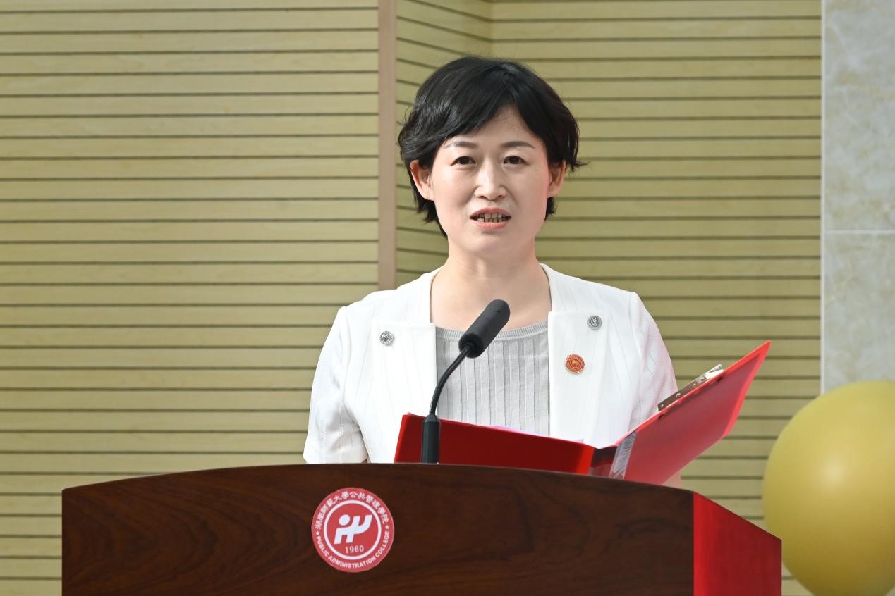 毕业典礼在庄严的国歌声中拉开了帷幕。湖南师范大学研究生院党委书记龚舒首先致辞,她代表校研究生院向我院2022届毕业研究生表示热烈祝贺与衷心祝愿,希望每一位公管学子能永葆家国情怀、铸就青春底色、常怀感恩之心,在今后的工作生活中秉持“仁爱精勤”的校训精神和“正大日新”的院训理念,追求卓越、踔厉奋发、勇毅前行。