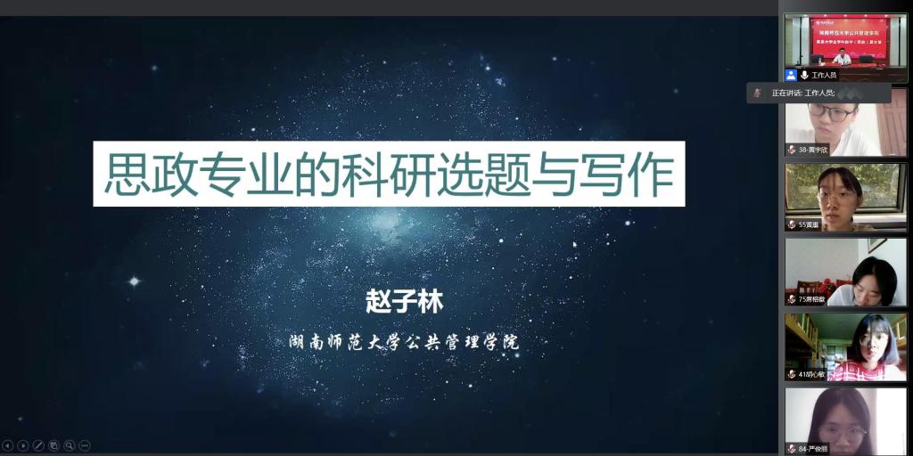 湖南师范大学2021年首届大学生学科教学(思政)夏令营,在博后楼401教室和腾讯会议网络平台举办,持续一周的高品质、高效率的夏令营活动,整体取得了良好的成效,赢得了学员们的一致好评。