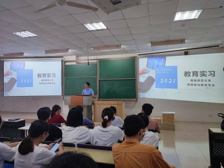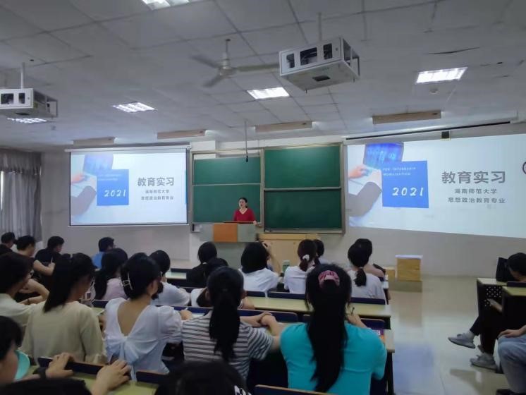 接着,负责教育实习工作的伍屏芝老师宣读了思想政治教育专业教育实习计划,介绍了教育实习的目的要求、内容任务、具体安排、组织领导等等方面,教育实习将通过校内准备、全面实习和返校总结三个阶段,完成思想政治课教学、班主任工作与教育调查研究三大任务,并提出了实习各阶段的具体要求与注意事项。