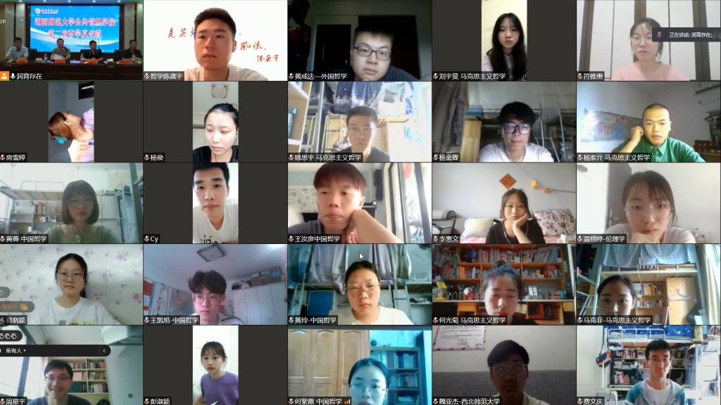 7月20日下午,哲学夏令营闭幕式在博后楼401报告厅如期举行。哲学系副主任孙保学副教授主持闭幕式。首先,2021级外国哲学方向研究生罗晓军同学作为我校首届哲学夏令营学员代表及我系优秀研究生代表进行发言;其次,山西大学哲学社会学学院魏胤妤、湘潭大学碧泉书院杨家亓代表本届夏令营学员分享其学思感悟;最后,湖南师范大学道德文化研究院常务副院长暨哲学系主任向玉乔教授做总结讲话。闭幕式结束后,孙保学老师就本次夏令营的开展情况对学员们做了问卷调查,得到了广大学员的积极反馈。