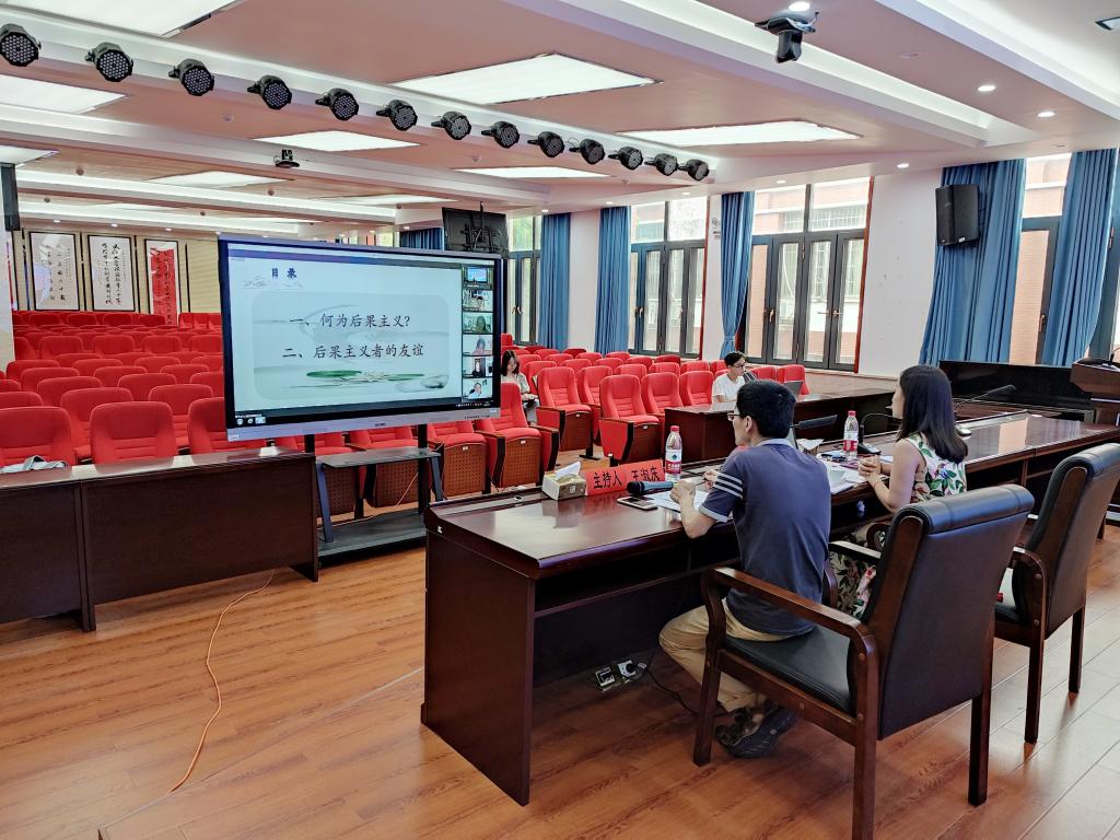 7月17日下午,余露副教授与同学们分享了她最新的有趣思考:“后果主义者可以拥有真正的友谊吗?”余老师在对后果主义的内涵进行说明之后,便引出了“后果主义能否与友谊相容”这一问题,进而系统、深入地梳理了当代哲学家对该问题的探讨情况。她指出,其中有两大交锋值得关注:其一,威廉斯主张后果主义会引起行动的疏离感,雷尔顿则认为疏离有其积极意义;其二,科金等人不赞同雷尔顿所举的例子是一种友谊关系,而梅森认为科金对友谊的说明是一种狭隘理解。讲座最后,余老师对同学们提出的友谊对于人类的利益、两类后果主义的区别、博弈论与后果主义的关系等诸多问题作了细致而全面的解答。