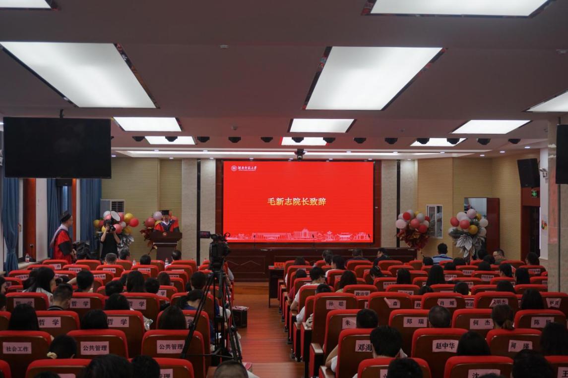 毕业典礼在庄严的国歌声中拉开了帷幕。院长毛新志教授首先致辞,他代表学院向顺利完成学业的2021届研究生表示衷心祝贺,希望毕业生们也能在今后的工作生活中牢记“仁爱精勤”的校训和“正大日新”的院训,满怀着对学校、学院的感恩之心,满怀坚定的信念和奋斗的决心,继续砥砺前行,不负青春韶华。