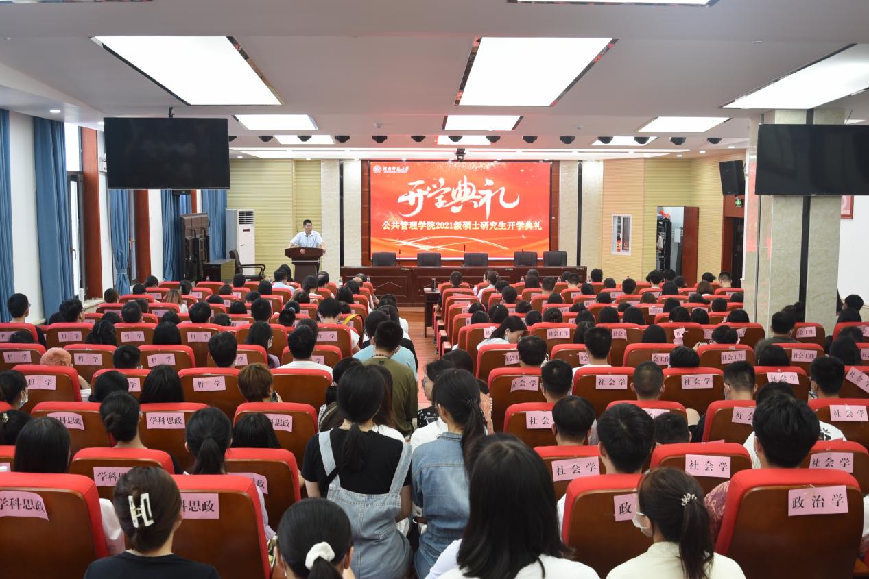导师代表王泽应教授向2021级研究生提出三点期望,第一,传承湖湘文化精神,秉承优良学风,用心、用力、用脑读书;第二,传承圣贤道德,端正学习态度;第三,树立大气量、大格局,立大志、向长远、谋未来。郑吉峰老师寄语2021级公管学子,作为新时代研究生,应当在平凡中创造伟大,在逆境中磨砺品质,在奋斗中成就人生,在实现中华民族伟大复兴的历史进程中担当起属于青年人的责任,把个人命运和国家命运相结合,努力学习专业知识,提升专业素养,在奋斗中贡献自己的青春热血和力量。