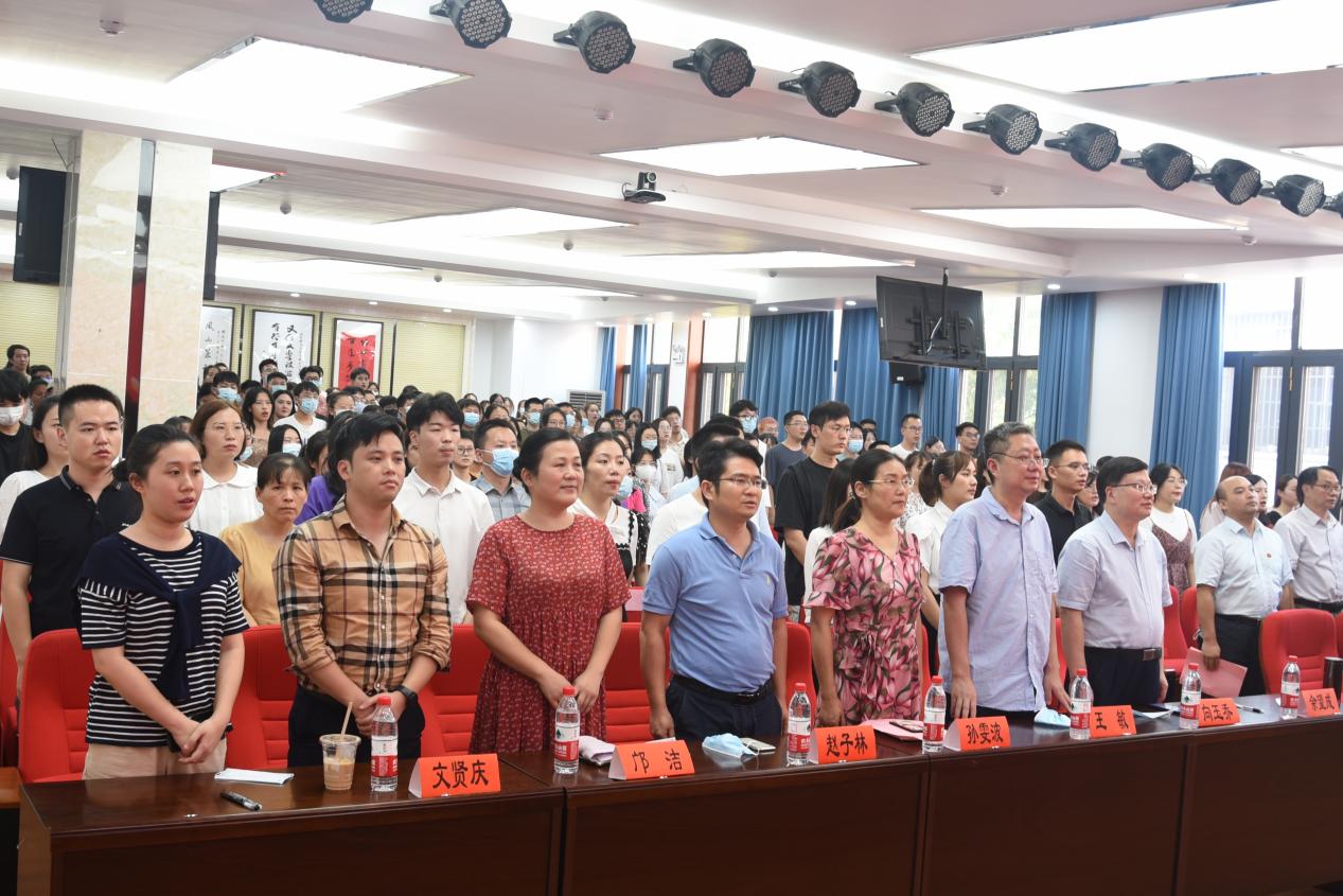 全体师生奏唱校歌。在庄重热烈的氛围中,9999js金沙老品牌2021级研究生开学典礼圆满结束。