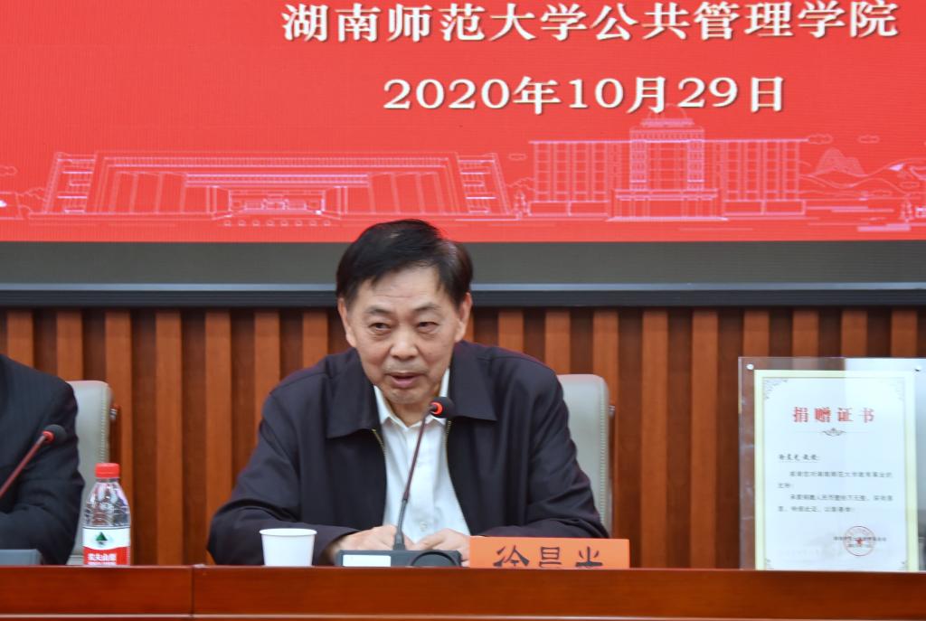 徐老师深情回忆了在湖南师范大学求学和工作的难忘岁月,表达了设立研究生科研奖学金的初衷:一为渊源,二为情怀,三为圆梦,希望以奖学金的形式践行善行文化,坚守教育初心。谈及我院政治学学科的发展优势和不足,徐老师语重心长,激励师生们努力奋斗、团结共进。他说,奖金虽少,心意却重;学科虽老,但不能老气横秋,希望政治学学科要老而不衰,焕发青春活力。