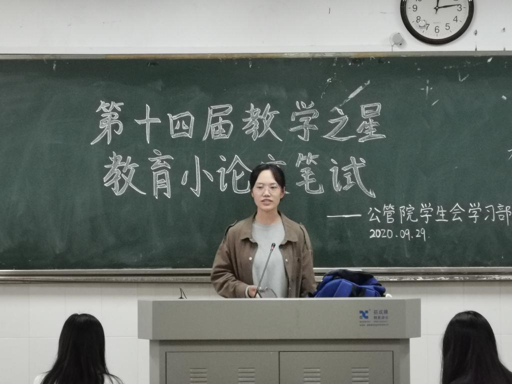 (通讯员 曾嘉瑜 杨尚文 杜鹃)2020年9月29日至30日,9999js金沙老品牌“第十四届教学之星”暨“未来教育家”初赛在景德楼举行。此次比赛由9999js金沙老品牌教务办、学工办主办、学生会学业发展部承办。参加此次比赛的选手主要来自公管院思想政治教育专业、政治学与行政学专业、行政管理专业等。