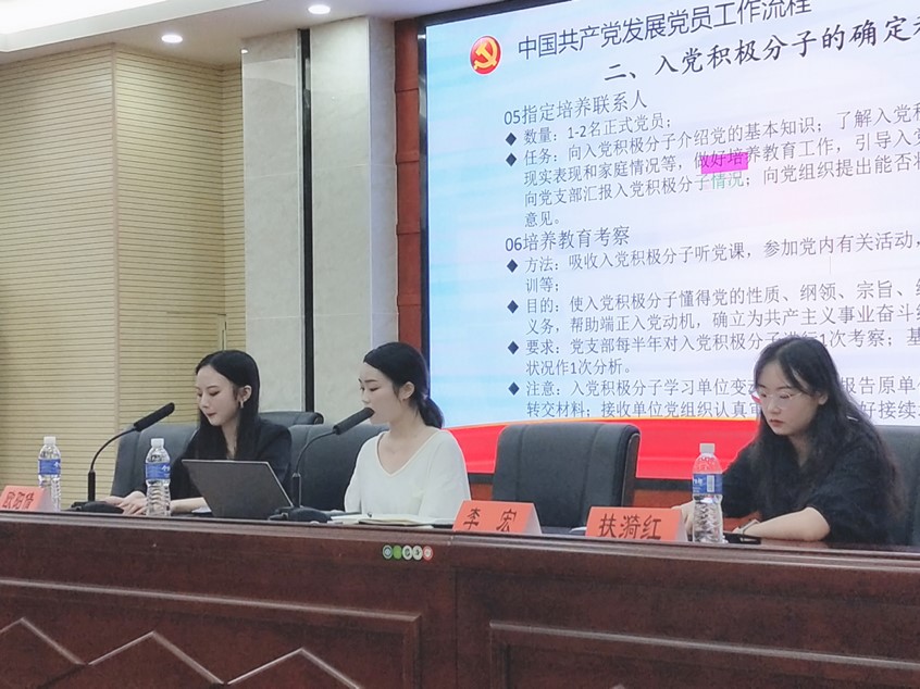 研究生党建工作指导委员会委员李宏、研究生会主席欧阳倩、19级年级主席扶漪红分别就9999js金沙老品牌党建工作、研究生会与研团总支、年级委及其工作内容进行了详细讲解和说明。