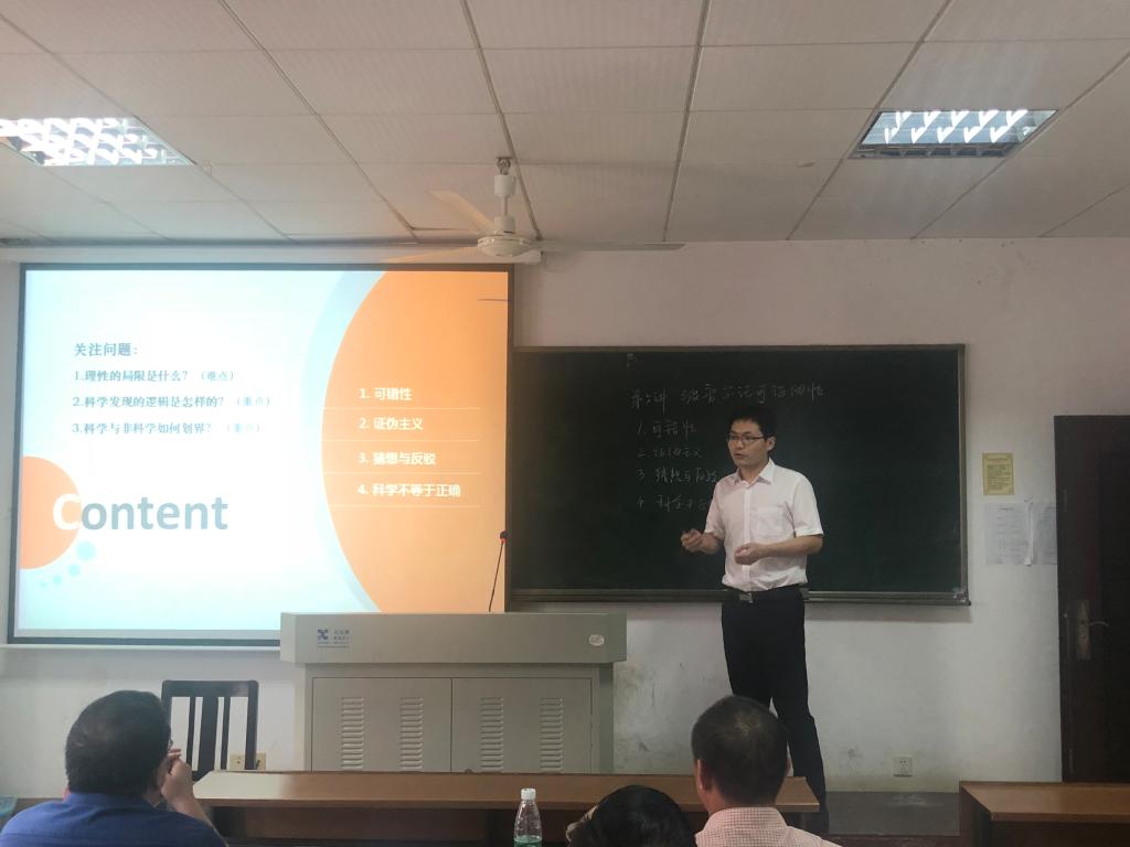 6月19日上午,9999js金沙老品牌在景德楼中栋312教室举办了2020年青年教师教学竞赛。各系经过初选,来自公管院四个系共计九位青年教师经过抽签依次上台进行15分钟的片段教学展示。他们借助新颖的多媒体课件和工整的板书,将抽象的理论知识讲授的栩栩如生。孙保学老师的《科技哲学》课阐释了波普尔的科学可证伪性理论;成程老师巧用一日三餐的趣味案例将抽样理论知识演绎的生活化趣味化;金玉老师运用社会心理学的理论破解穷人越穷的密码,生动阐释了稀缺资源思维模式的影响;肖根牛老师深入剖析卢梭的公意概念,彭婷老师富有传统文化韵味地解读了张载的气本论,郑吉峰老师通过引导学生品读共产党宣言潜移默化中展现共产党人的意志与品质,对情感态度价值观进行引导。各位青年教师凭借高超的教学能力在比赛中大显身手。