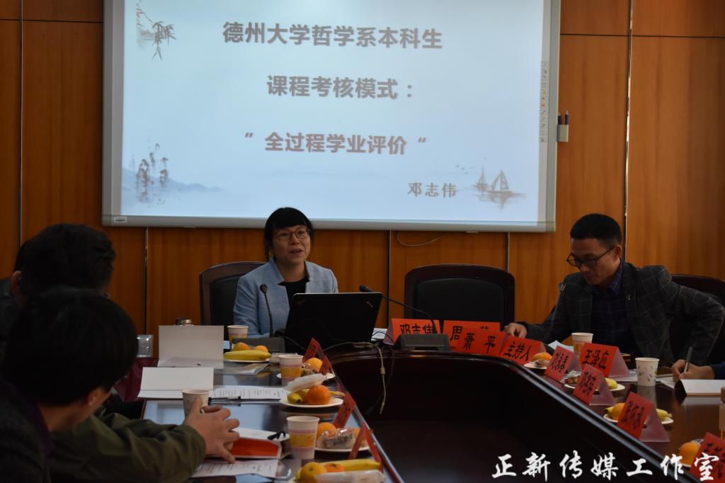 邓志伟副教授以“德州大学哲学系本科生课程考核模式——全过程学业评价”为主题和大家进行了分享交流。她主要介绍了德州大学哲学系本科生的课程考核模式,并对比我国目前的本科生课程考核,提出了一系列值得借鉴的观点。她认为目前我国的本科生课程考核主要侧重于期末考试,考核方式较为单一;建议在今后的教学过程中应结合学生的课程参与、出勤率、课外作业以及论文等各方面的表现来综合评价学生,并相应减少期末考试所占比重。
