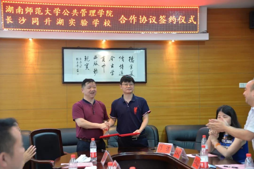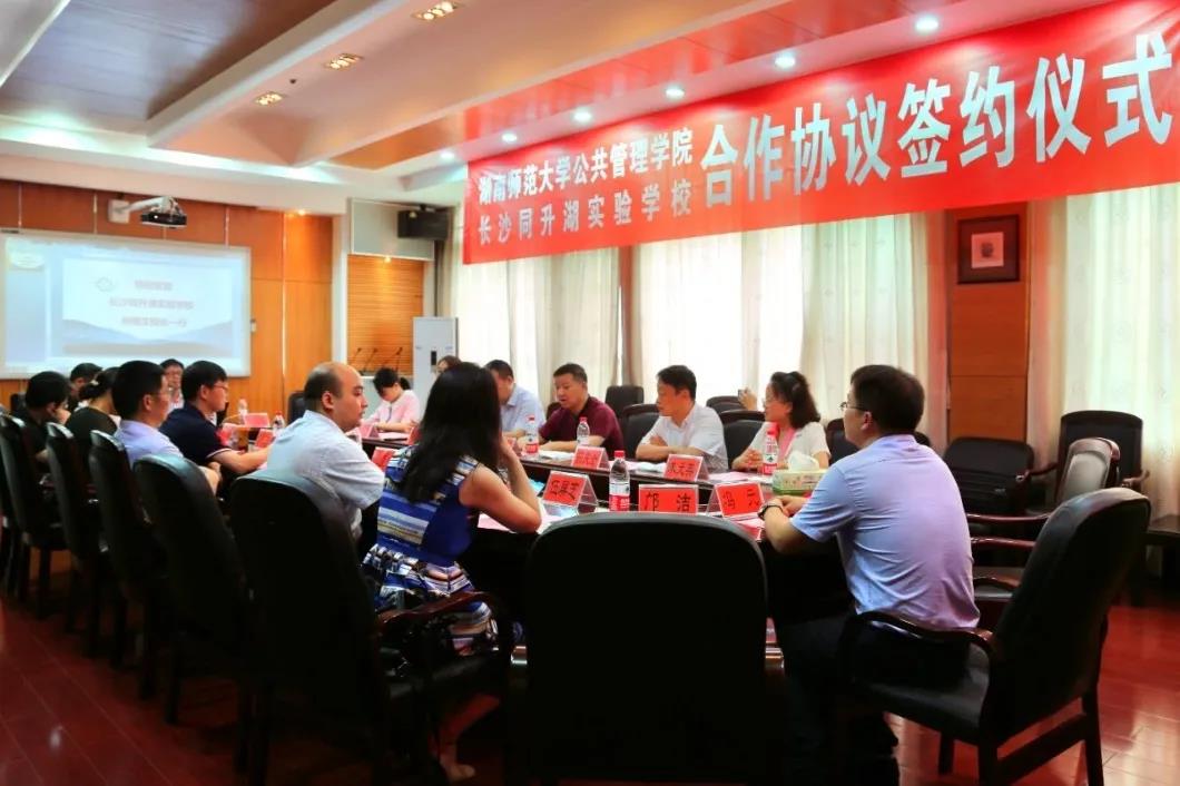7月15日上午,我院与长沙同升湖实验学校战略合作签约仪式在学院景德楼隆重举行。我院院领导及教师代表、同升湖实验学校校长孙培文、副校长朱元英、李清江、安博教育直属学校运营中心总经理茹庆全等出席了签约仪式。签约仪式由副院长李超民主持。