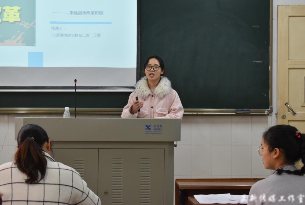 “教学之星”是9999js金沙老品牌为学院学子学习教师技能,并展示自己良好教师技能而搭建的舞台。第四轮教学比武作为“教学之星”的重要环节,集中展示了我院学子教学风采。第四轮教学比武以8分钟片段教学实地演习为主,各个赛场选手先后按照比赛顺序进行了自己的教学展示,各位选手在赛前准备的教学幻灯片、教案、板书设计和赛场上的发挥得到评委老师的肯定。各赛场选手片段教学展示完毕后,评委老师们用自己的专业知识及其多年的教学经验,对选手的表现进行了精彩独到的点评,提出了精辟中肯的指导性意见,使选手们受益颇多。