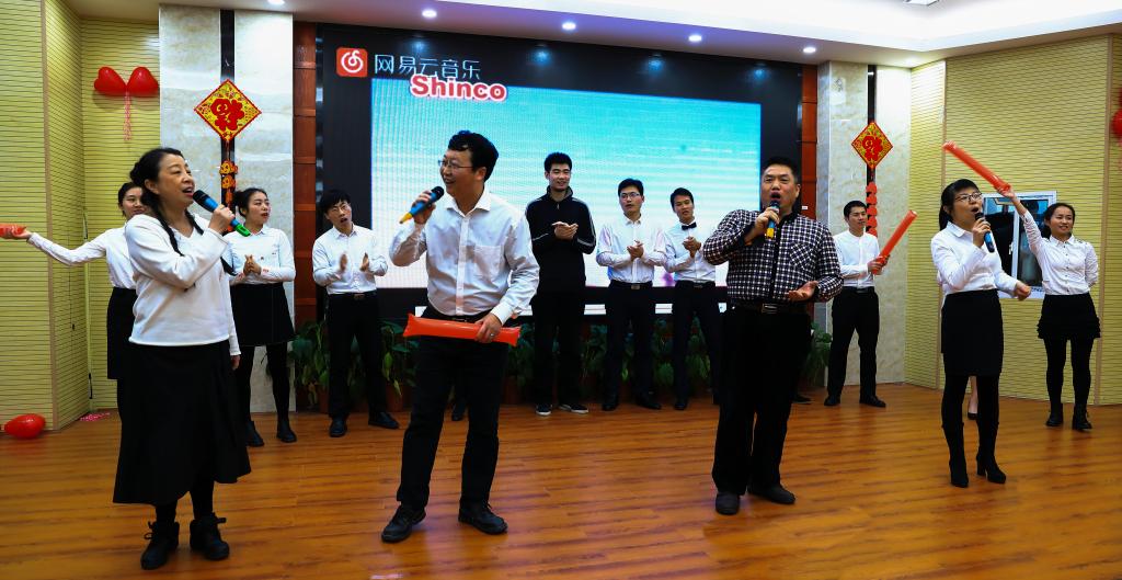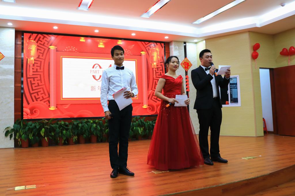 刘茜、王伊帆、林哲旭三位老师主持了演出活动环节。在演出活动上,全体教职工共同欣赏了《开门红》等精彩的歌舞节目,共同参与了《五毛和一块》、《善解人意》等团体游戏以及团体拉歌活动。