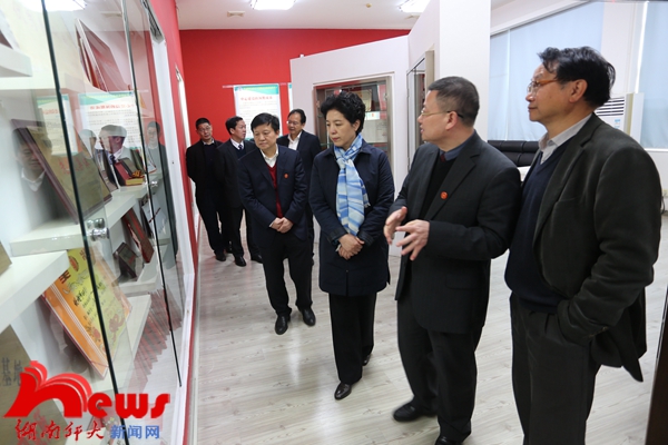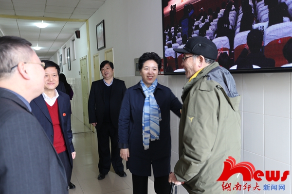 乌兰一行先后参观了我校校史馆、教育部人文社会科学重点研究基地道德文化研究院成果展览室,观看了湖南省思想政治工作示范项目微视频《红色论坛》,考察了我校与岳麓区学堂坡社区“区校共建大学生道德高地”。考察调研过程中,乌兰看得认真,听得仔细,并不时提问,详细了解我校办学历史、人才培养、学科建设、大学生志愿服务等有关情况。
