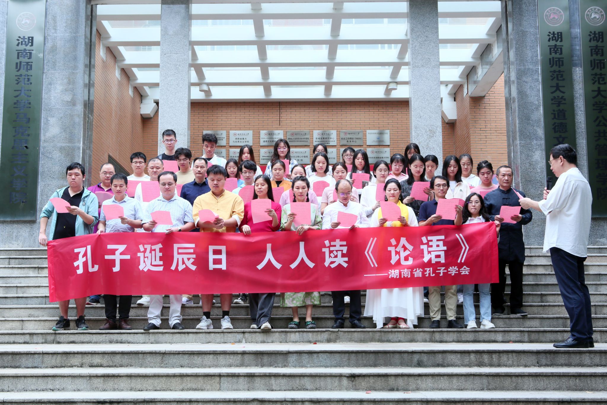 9月28日上午,为纪念孔子诞辰2574年,致敬伟大的至圣先师,致敬不朽的人文经典,积极传承与弘扬中华优秀传统文化,提升国民的文化自信与国学涵养,湖南省孔子学会在湖南师范大学景德楼庄重举行拜孔仪式和《论语》诵读活动,学会部分领导、常务理事、理事、会员及湖南师范大学哲学系2021级本科生参加了本次孔子诞辰纪念活动。“为天地立心,为生民立命,为往圣继绝学,为万世开太平。”希望广大会员和学子传承洙泗遗风,延续中华慧命,积极发扬仁爱精神,深厚培植家国情怀,奋力承担人文使命。