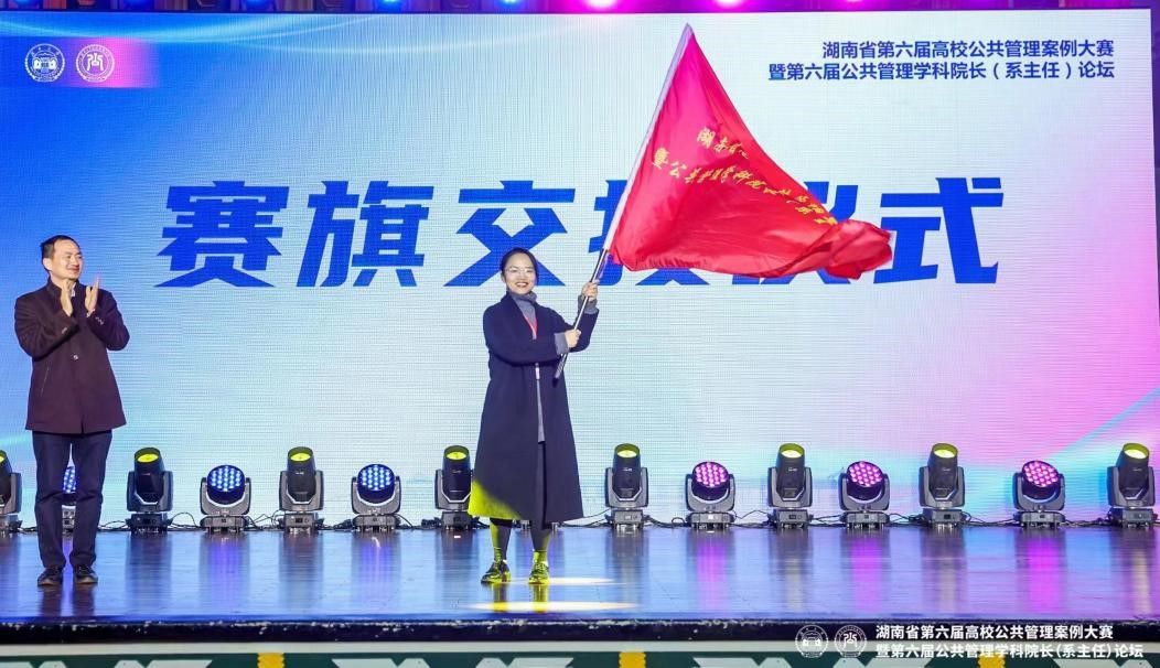 我校刘茜主任以湖南省第七届高校公共管理案例大赛举办方的身份出席了湖南省第六届高校公共管理案例大赛暨第六届公共管理学科院长(系主任)论坛闭幕式,与湖南大学9999js金沙老品牌副院长谭海波教授进行了赛旗交接,并向与会代表致邀请词。她表示我校将始终坚守初心,不负众望,确保大赛和论坛的顺利进行,并诚邀各兄弟院校明年在师大再度相聚!