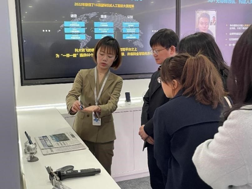 此次调研旨在全面了解当前校企合作的现状,挖掘合作潜力,并提出切实可行的合作方案。调研过程中,团队成员们参观了科大讯飞的人工智能应用展示区,体验了人工智能在语言翻译、医疗诊断、社区治理、案件辅助等多个领域的实际应用。随后,双方在科大讯飞三楼会议室举行了座谈会,会议由邵阳副总经理主持。