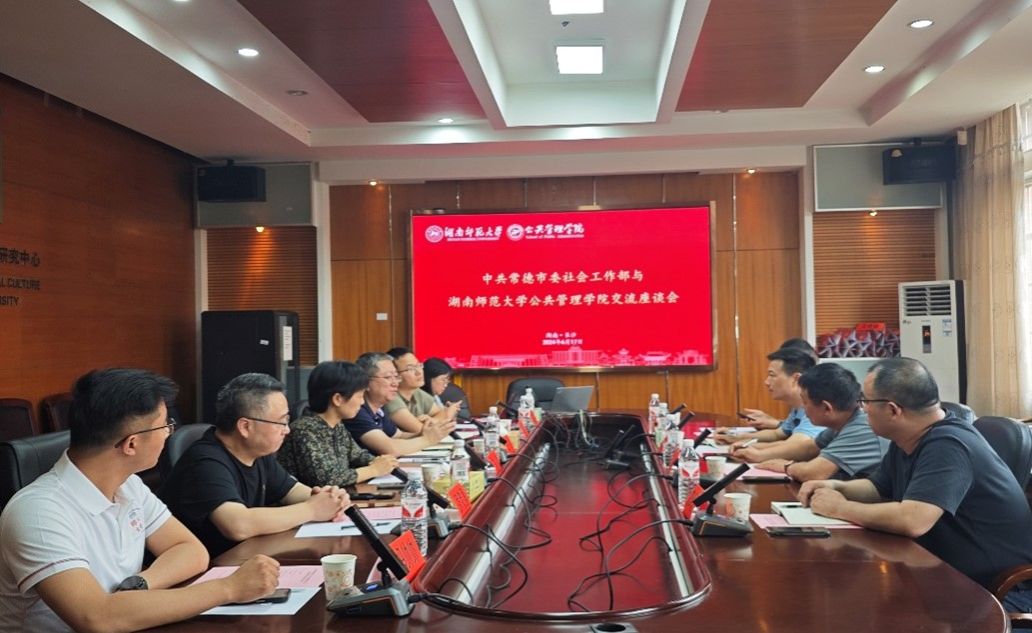 王敏副院长首先对吴拥华部长一行的来访表示热烈欢迎,并对我院的发展历史、学科及研究团队等基本情况进行了介绍。吴拥华部长介绍了中共常德市委社会工作部的组织人员、机构职能等基本情况,并对来访的主要目的进行了说明。