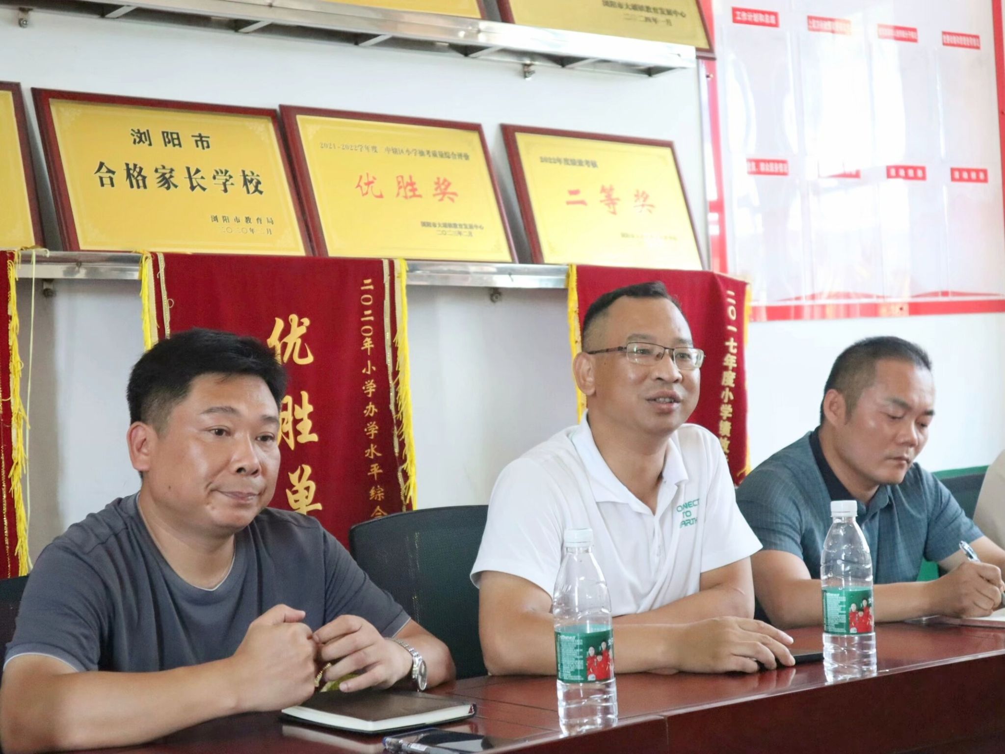会议伊始,胡景喜、刘良茂、邹晖与团队成员分别自我介绍。随后,刘良茂强调夏令营期间学生的安全和学习问题,希望团队成员通过素质拓展课程提高学生的综合素养;胡景喜回忆双方的友好合作并对此次夏令营表达肯定与期待,他表示会提供力所能及的帮助;邹晖与团队成员探讨确定夏令营作息时间并补充要树立节约意识、爱护公共财物。最后,双方合影留念。