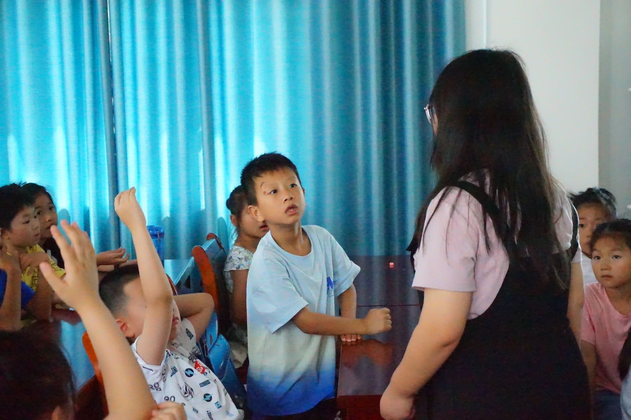 孩子们认真听讲并回答问题