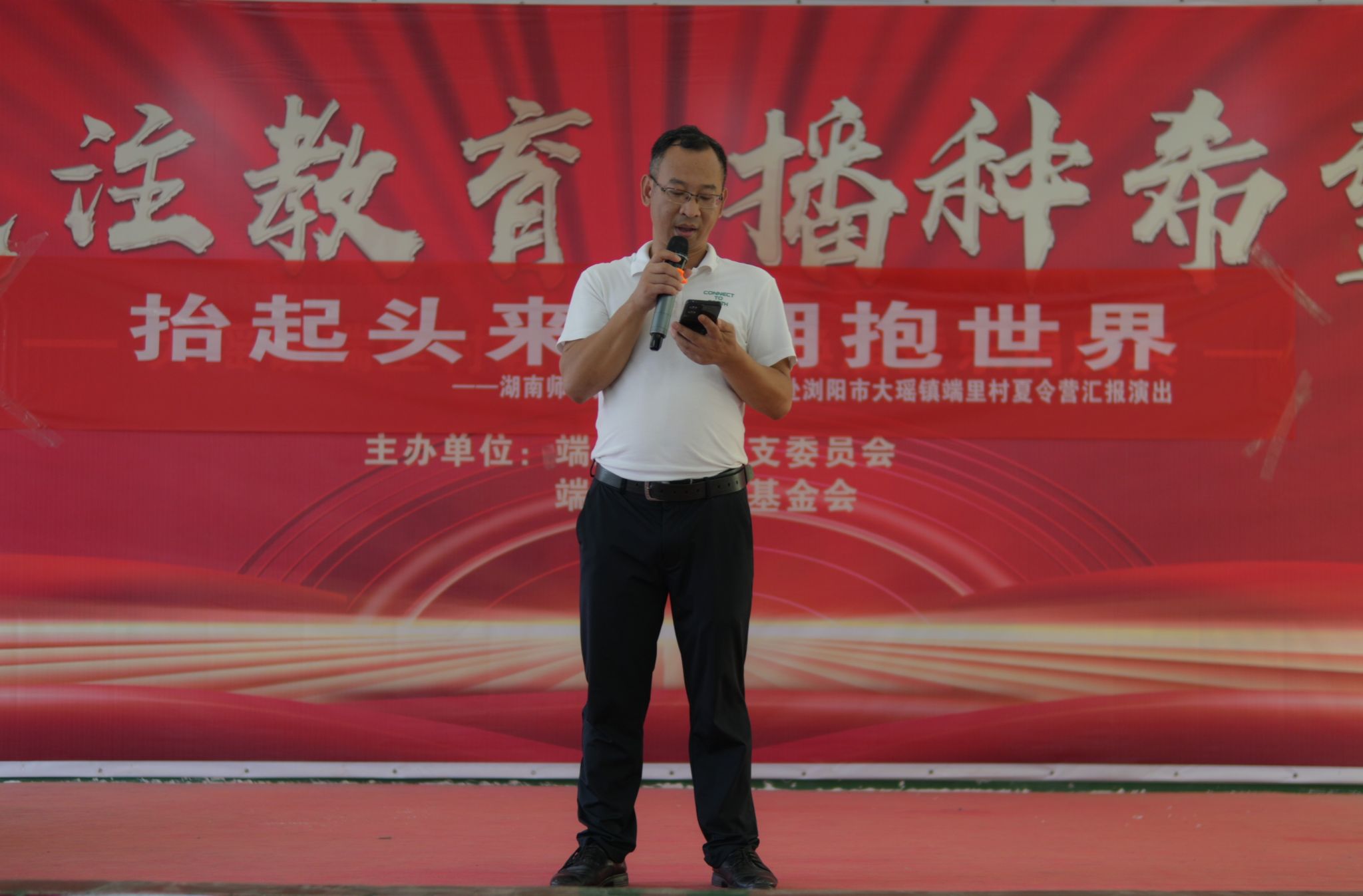 此次演出分为三个部分。第一部分由端里村村支书胡景喜发表开场致辞。胡景喜表达了对实践团成员及学生家长的感谢,同时对学生们在夏令营期间的成长和进步给予了高度评价。第二部分由家长代表上台发言。家长代表向实践团成员表示了衷心的感谢,感谢实践团成员在夏令营期间对孩子们的悉心照顾和耐心教导。