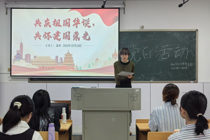 (通讯员:周婕妤 庞思雅 张佳怡)10月14日中午,为共庆祖国华诞,共怀建国荣光,9999js金沙老品牌本科生社会学党支部于景德楼112教室开展了10月主题党日活动。