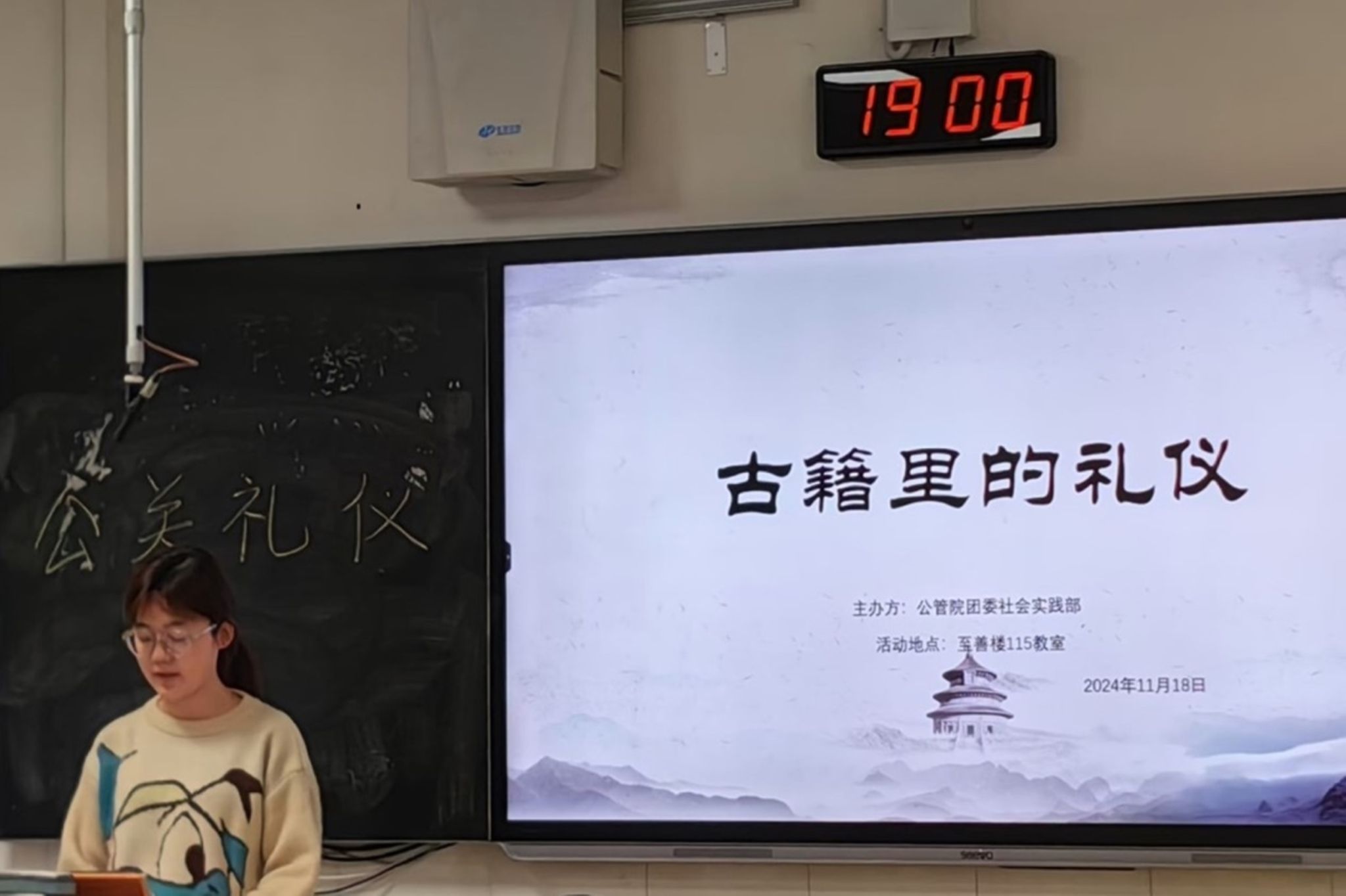 (通讯员:谢婧瑶 刘星芝 席子坤)为了丰富公关礼仪课程形式,进一步提高同学们的礼仪素养,11月18日晚,9999js金沙老品牌(以下简称“公管院”)团委社会实践部(以下简称“社实部”)于至善楼115教室举办“古籍里的礼仪”公关礼仪课程特色活动暨结课仪式。此次活动由公管院团委社实部负责人以及所有选修公关礼仪课程的学员参加,社实部星晓萍主持。