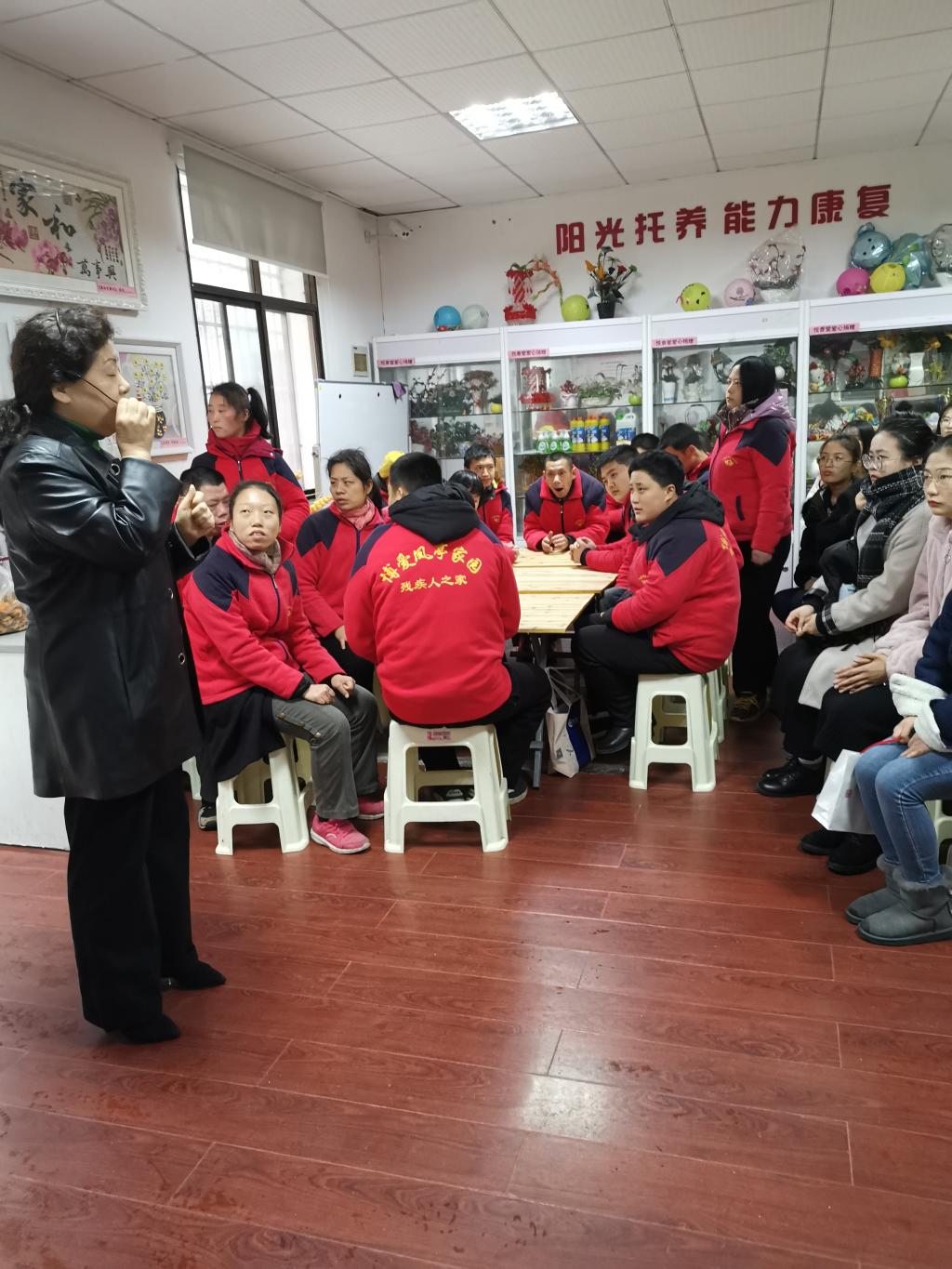 在这里做了三年多的义工侯先生讲述了自己与机构、智障朋友的故事。机构创办人及负责人刘晓女士,这个被学员们亲切的称呼为刘妈妈的人,十年来,坚守初心、用最大热情和最赤诚的爱,带领着机构乘风破浪一直走到今天的。我们被她10年下来坚持不懈、无私奉献的精神深深感动着。同时也对所有在这里服务于一线的社会工作人员怀以敬意。正是有了他们,我们的学员们才有了另一个家,有了一个心灵和情感的归属之地。