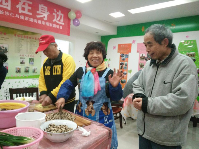 活动共分为上午“冬至水饺齐动手”和下午的“才艺分享大团圆”两大主题。上午九点,幸福家园的爷爷奶奶们带着包饺子的各种工具纷纷到来,幸福家园顿时热闹了起来了,冬至包水饺活动就此开始。有的同学认真地学习着并不熟悉的水饺厨艺,有的展现着自己娴熟的包饺子功底,大家其乐融融、打成一片,幸福家园服务中心被温馨与欢笑萦绕着。下午一点半,水饺的余香犹在,主持人蒋意同学宣布了才艺汇演正式开始。同学们个个热情洋溢、爷爷奶奶们纷纷拿出绝活,从唱歌到舞蹈、从书法到魔术,节目丰富多彩,欢声笑声不断!大家心里畅想着幸福与欢乐这样同一个心声,最后活动在众人齐唱《难忘今宵》中圆满闭幕。