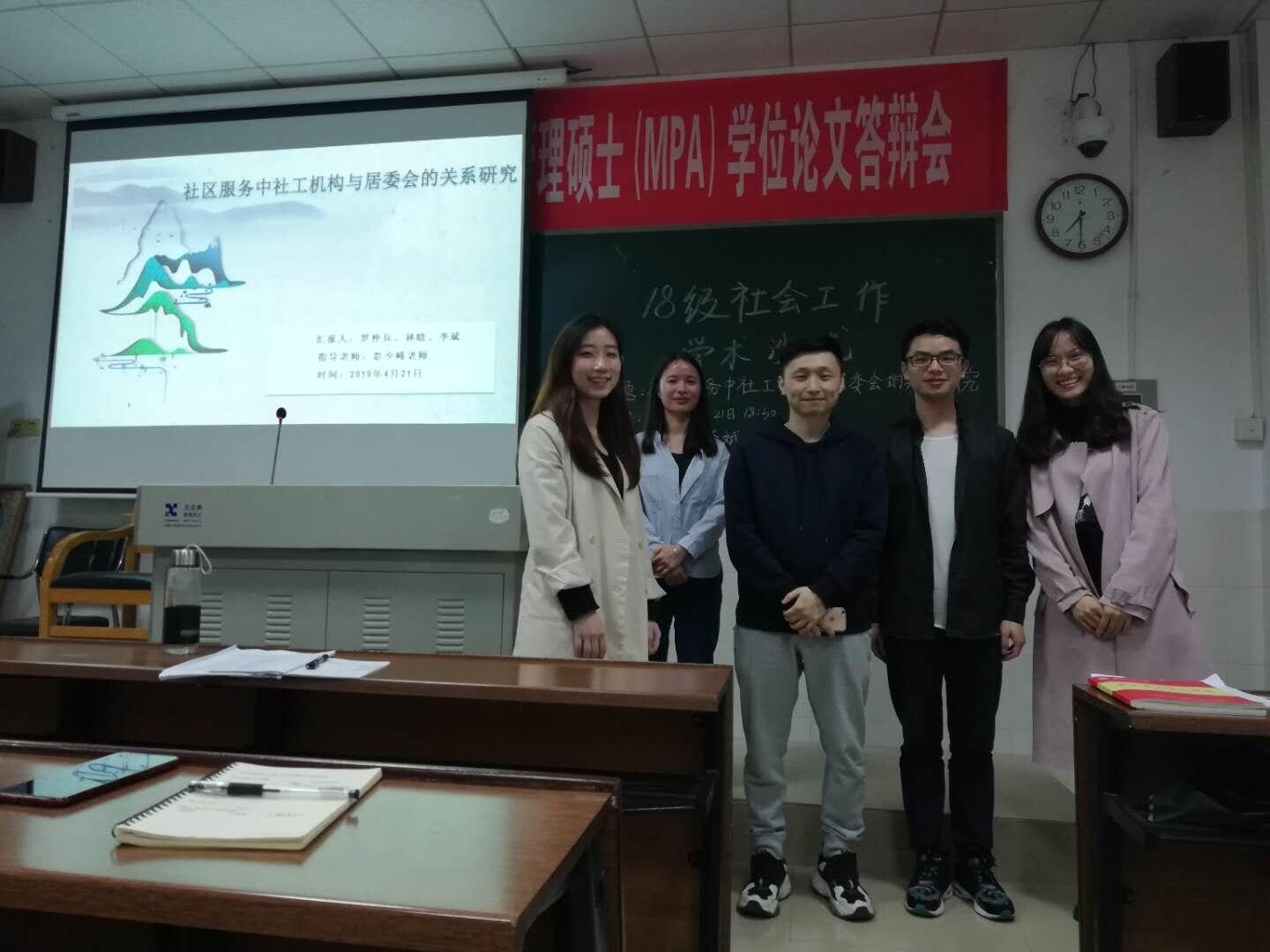 (通讯员:林晗陈雅倩)2019年4月21日晚18:30,我院公管楼416教室举办了2018级第21期“景德论坛·学术沙龙”活动。本次活动以“社区服务中社工机构与居委会关系研究”为主题,来自社会工作专业的罗仲兵、李斌、林晗三位同学为本次活动的主讲人,王玲同学为主持人,并邀请了社会学系彭少峰老师前来指导。