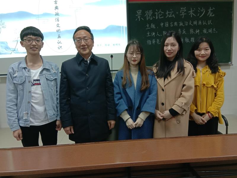 (通讯员:税明杰 曾坚强)2019年3月21日晚18:30,我院于公管院416教室举办了2018级第2期“景德论坛·学术沙龙”。本次活动以“中国古典政治文明再认识”为主题,来自政治学专业的陈妍、李庆、陶云飞、税明杰四位同学为主讲人。此次学术沙龙由万燕玲同学主持,并邀请了政治学系蒋国海老师作为指导嘉宾。