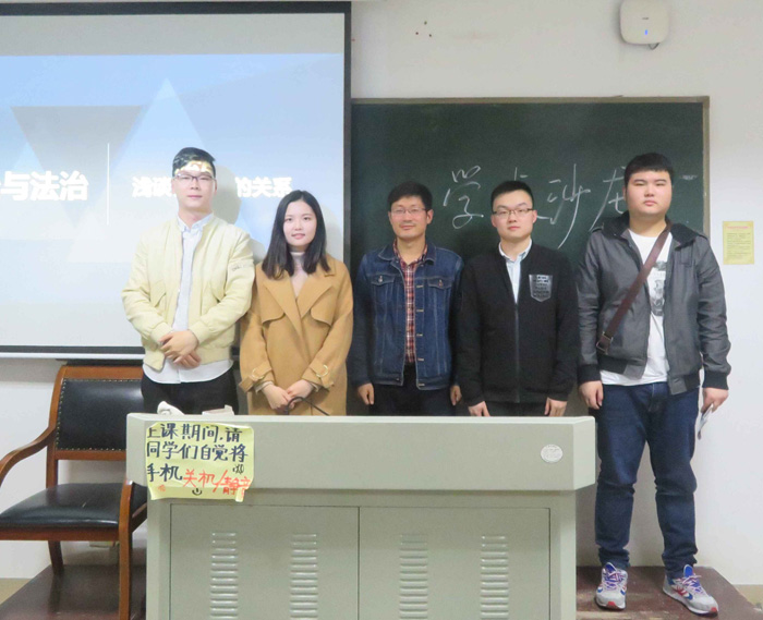 (通讯员 李娜)2018年4月15日晚7点,在公管院313教室举办了以“‘德治’与‘法治’的哲学之思”为主题的学术沙龙,来自哲学专业的谭阳阳、曾嵘、刘遥阳、何星宇四位同学担任本次活动的主讲人。本次活动邀请了哲学系刘永春老师作为指导嘉宾,陈伶俐同学主持本次活动。