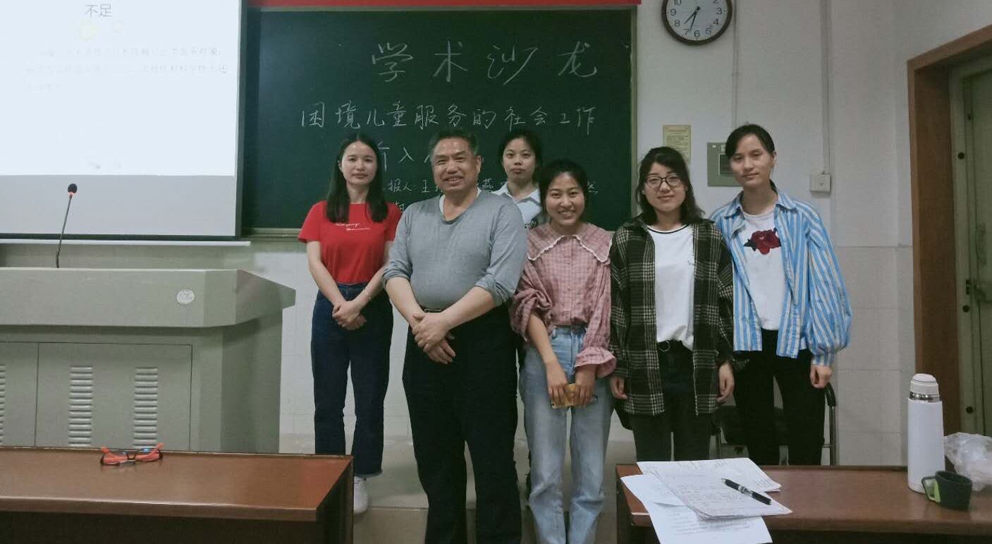 (通讯员:王玲 曾坚强)2019年4月20日晚18:30,我院于公管楼416教室举办了2018级第20期“景德论坛‧学术沙龙”活动。本次活动以“困境儿童服务的社会工作介入研究”为主题,来自社会工作专业的王玲、卢笑然、宋鹏雪、周开燕为主讲人。社会工作专业肖汉仕老师作为指导嘉宾参加了本次学术沙龙,罗仲兵同学担任主持人。