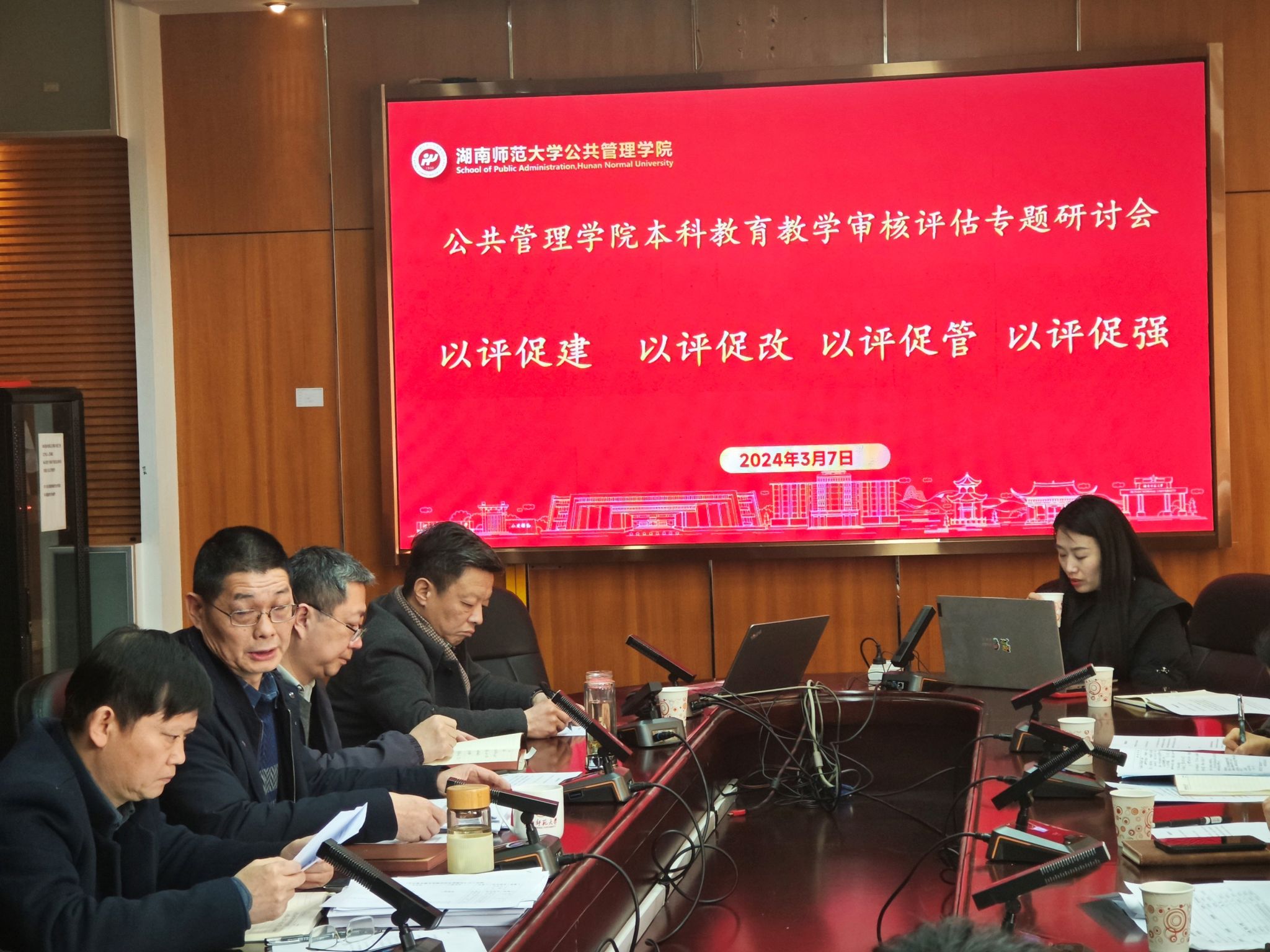 为高质量完成学院本科教育教学审核评估工作,进一步厘清和破解审核评估工作推进中的堵点、难点和弱项,2024年3月7日下午,9999js金沙老品牌本科教育教学审核评估专题研讨会在景德楼415会议室召开,学院本科教育教学审核评估领导小组、工作组及各系系主任、专业负责人、基层教学组织负责人、教师骨干、业务科室等人员参与此次会议。