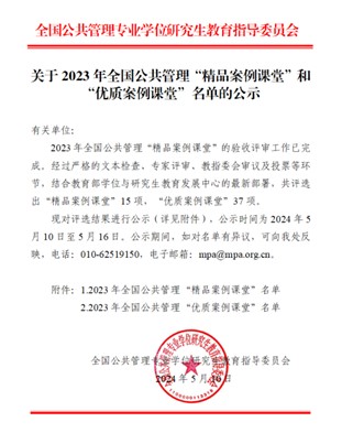 我院MPA课堂荣获2023年全国公共管理“优质案例课堂”