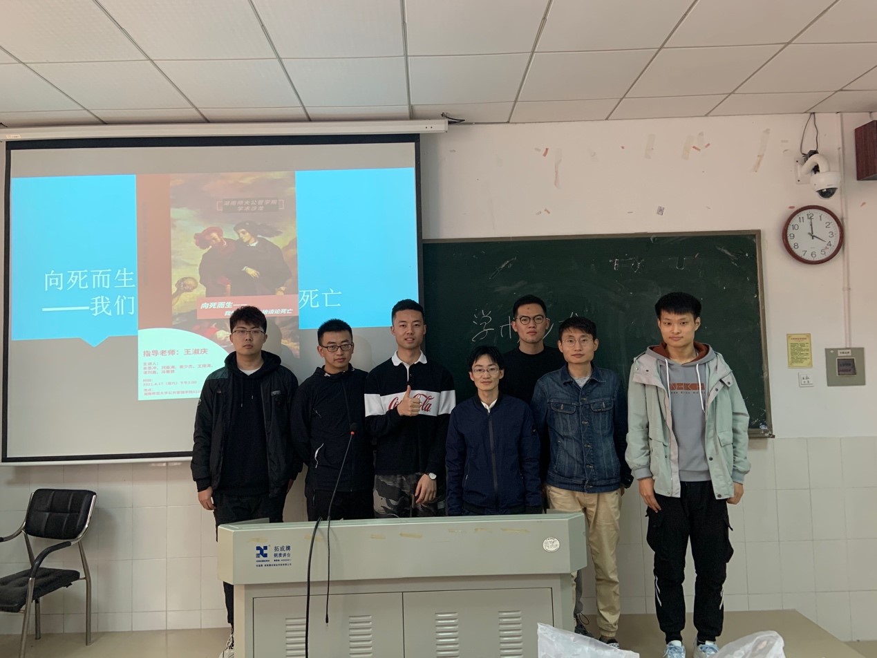 第13期“景德论坛·学术沙龙”活动以“向死而生——我们如何哲学地谈论死亡”为主题,来自哲学专业的崔少杰、余思冲、冯晋赟、湛刘鑫、王观涛、刘亚洲六位同学为本次活动的主讲人,并邀请了哲学系王淑庆老师前来指导。主讲人谈及了生命的延续以及如何追寻生命的意义,并呼吁大家要珍惜热爱生活。王淑庆老师提出了本次学术沙龙的不足之处以及相关建议:第一,加强问题意识;第二,进一步缩小话题角度;第三,脱稿讲解;第四,精简ppt的内容。