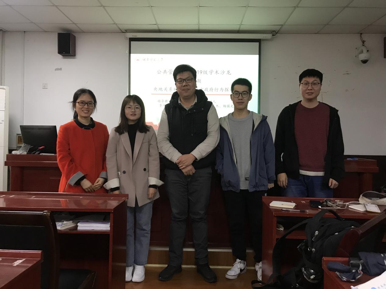 2021年3月18日上午9:00,我院于公管院209教室举办了2019级第1期“景德论坛·学术沙龙”活动。本次活动以“央地关系视角下的地方政府行为探讨”为主题,来自政治学学科的王慧芬、杨蕾、王杰、杨国光、戴水文五位同学为本次活动的主讲人,王杰同学为主持人,并邀请了政治学理论研究方向的李中仁老师作为指导嘉宾。