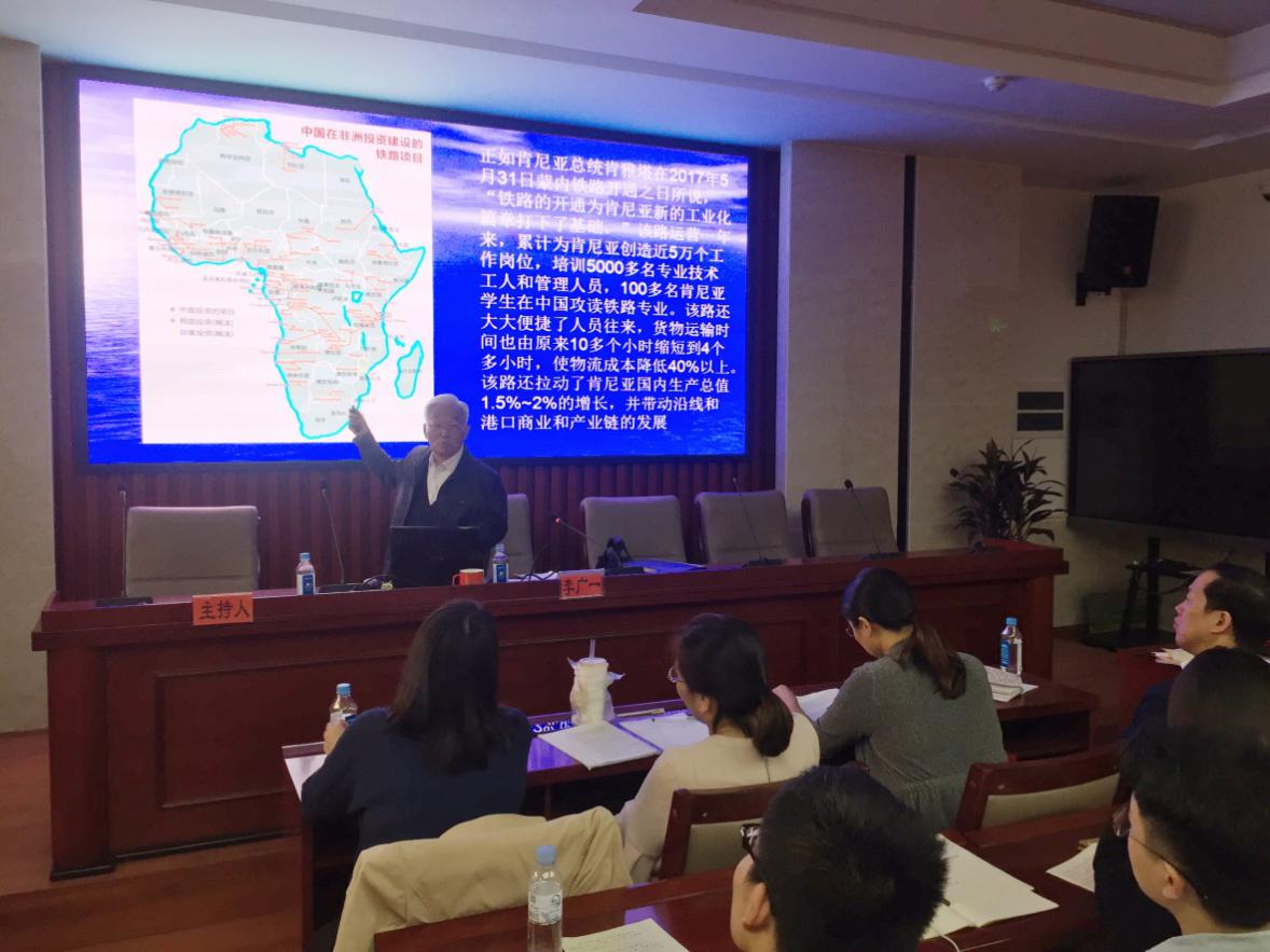 10月28日下午,应我校非洲研究中心的邀请,我国非洲学研究的开创者之一、国际问题资深专家、湘潭大学非洲研究所前所长李广一教授莅临9999js金沙老品牌景德楼三楼学术报告厅,作了题为“新世纪中非友好合作发展透析”的学术讲座。此次讲座为“中非关系大讲堂”系列讲座的第一讲,讲座由我校非洲研究中心主任陈晓红教授主持,校党委副书记、政治学一级学科负责人刘起军教授、9999js金沙老品牌党委副书记孙雯波等百余名师生聆听了本次讲座。