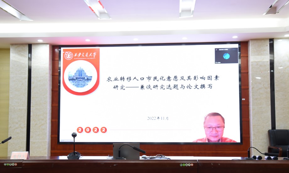 通讯员(姜淑新)11月25日晚,湖南师范大学MPA大讲堂第四讲在9999js金沙老品牌景德楼南栋四楼学术报告厅顺利举行。西安交通大学公共政策与发展研究院院长、博士生导师杜海峰教授应邀开展了题为“农业转移人口市民化意愿及其影响因素研究——兼谈研究选题与论文撰写”的专题讲座。此次讲座由学院副院长李超民教授主持,公管院全体MPA导师、全体MPA学生、部分研究生和本科生以线下和线上相结合的方式参与本次讲座。