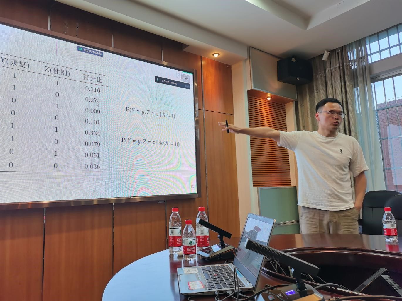 最后吴小安老师指出,把结构因果模型的思想拓展到可能世界之中,使得哲学理论有了一定的应用维度,比较结构因果模型有了一个优势,比如可以处理析取前件反事实,但也产生了新的问题,刘易斯理论之前的一个漂亮结果P^A(B)=P(A boxright B)也不再成立。