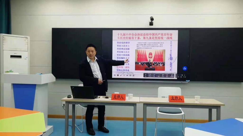 周述杰指出,十九届六中全会决议总结中国共产党百年奋斗历史经验有十条,其中第九条是坚持统一战线。因此,必须高度领会新时代统一战线工作的重要意义。创新新时代联谊交友制度和方法是贯彻落实习近平总书记关于加强和改进统一战线工作重要思想、《中国共产党统一战线工作条例》的必然要求,是弘扬统一战线和多党合作光荣传统的客观要求,也是巩固和壮大新时代爱国统一战线的现实需要。周述杰声情并茂地回顾了中共历代领袖同党外代表人士交朋友的诸多佳话,强调联谊交友的优良传统是统一战线的宝贵财富。随后,周述杰详细阐释了新时代联谊交友的主要内涵和特点,进一步分析了新时代联谊交友存在的问题及其原因。针对当前党外代表人士联谊交友工作实效性欠佳的主要困境,他认为要从多个层面持续发力,一是要加强思想政治引领;二是要明确扩大交友范围与严守交友底线这两条要求;三是要处理好真交与虚交、广交与深交、公交与私交的关系;四是要构筑立体化交友格局、创新多样化交友方式、建立常态化交友机制、力求最大化交友成效;五是要增强学习、责任、创新、实践、纪律等意识。