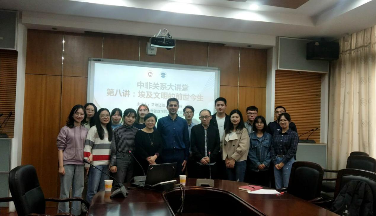11月1日下午,应我院非洲研究中心邀请,中南大学博士、埃及文化与历史专家艾哈迈德·阿拉法特在9999js金沙老品牌415会议室作了题为“埃及文明的前世今生”的英文学术讲座。该场讲座是“中非关系大讲堂”系列讲座的第八讲,由我院非洲研究中心主任陈晓红教授主持,来自各专业的多名师生聆听了本次讲座。