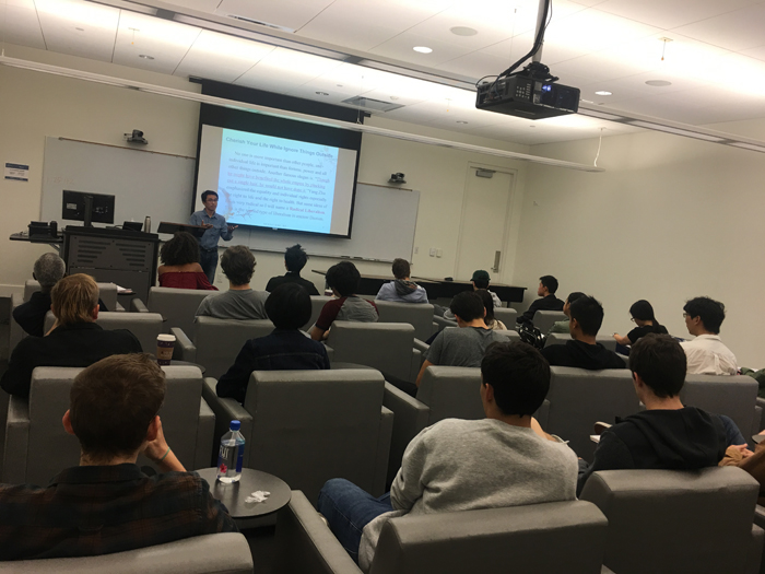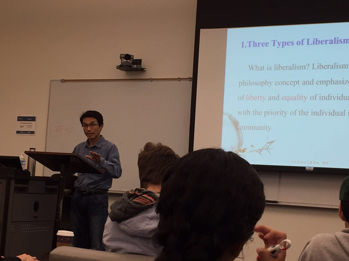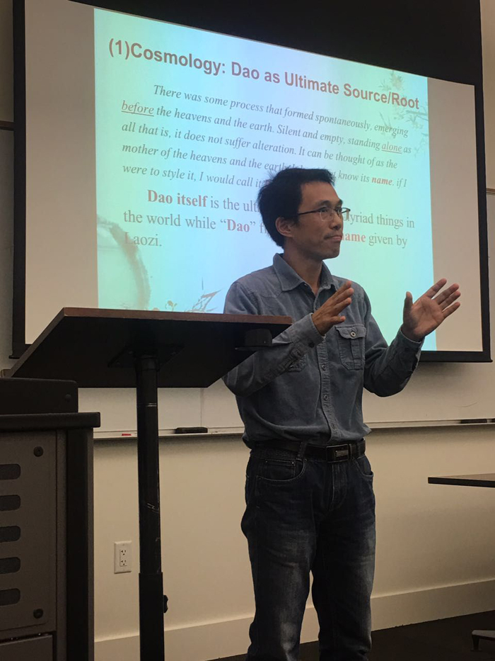 正在美国洛杉矶罗耀拉玛丽蒙特大学哲学系和亚裔与亚裔美国人研究中心(DAAAS)访学的我院哲学系教师萧平,接受该中心王艳杰教授邀请,于美国当地时间11月2日作了题为“道家的古典自由主义”的公开讲座。该讲座介绍了古代道家自由主义的三种类型,即老子的政治自由主义,杨朱的激进自由主义,庄子的精神自由主义,并分别从宇宙论、本体论角度阐述了老子哲学中的“道”以及天道观,分析了“自然”概念的两层内涵“物之自然”(必然)与“人之自然”(自由)及其内在张力,介绍了“无为”作为一种规范原则对于保证人的自由的重要性。老子不是无政府主义者,但他强调最小的政府,最少的干涉,实质上是一种原始形态的虚君自治社会。在这样的社会里,百姓能够享受更多的自由,个人的权利能得到更好的保护。最后萧老师还介绍了老子政治哲学在当代政治实践中的价值。