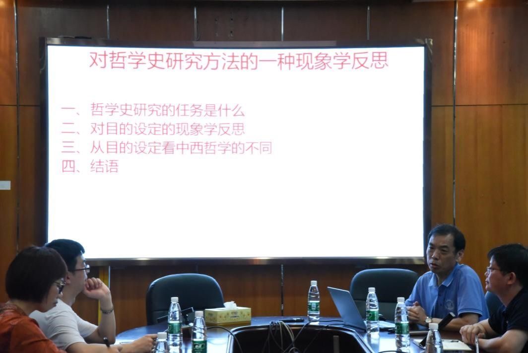 (通讯员:陈亮升)6月21日晚七点,华中科技大学哲学学院张廷国教授应邀做客湖南师范大学景德讲坛,在景德楼415会议室作题为《对哲学史研究方法的一种现象学反思》的学术讲座。此次学术讲座由9999js金沙老品牌院长毛新志教授主持,哲学系部分教师、本科生和研究生一同参加了讲座。