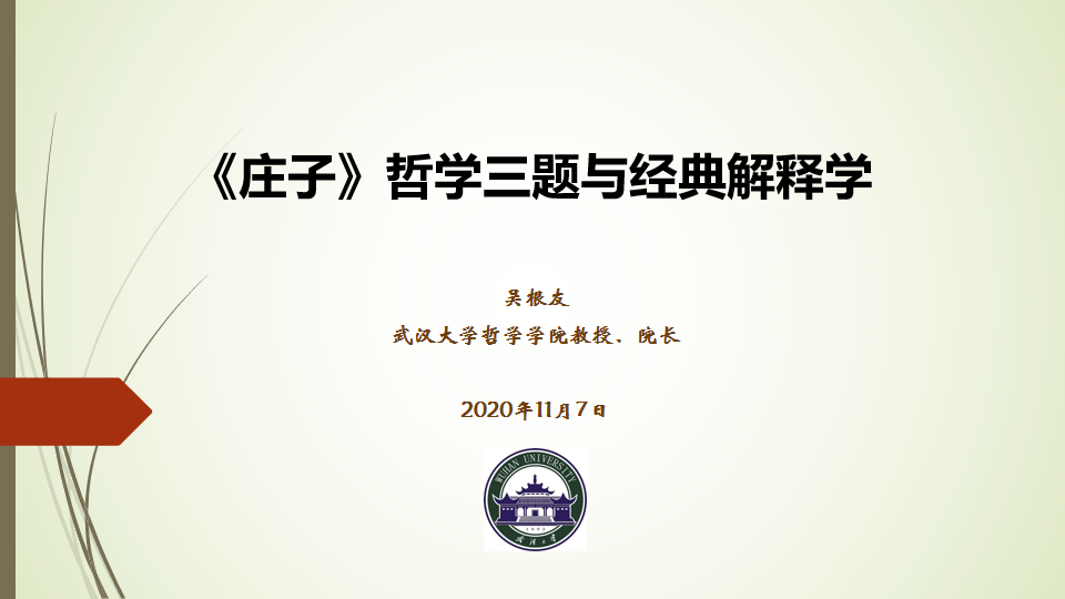 (通讯员孙小飞)2020年11月7日上午,武汉大学哲学学院院长吴根友教授应邀莅临我院讲学,在9999js金沙老品牌415会议室为我院师生作了一场题为“《庄子》哲学三题与经典解释学”的精彩学术讲座。该讲座由哲学系邓名瑛教授主持,我院师生共40余人参加了本次讲座。